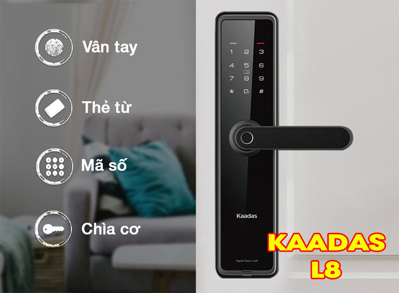 Khóa điện tử Kaadas L8-5 mở khóa bằng 4 phương thức : Vân tay, thẻ từ, mật mã, chìa cơ.
