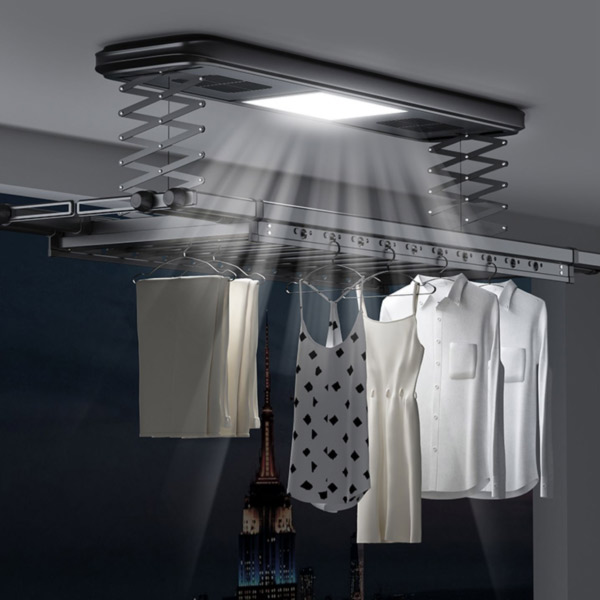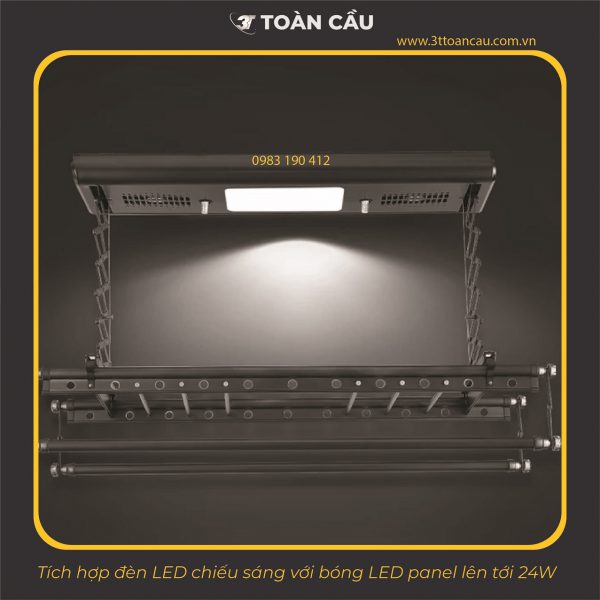 Việc tích hợp đèn LED giúp người sử dụng vô tư thu đồ phơi kể cả trời tối.