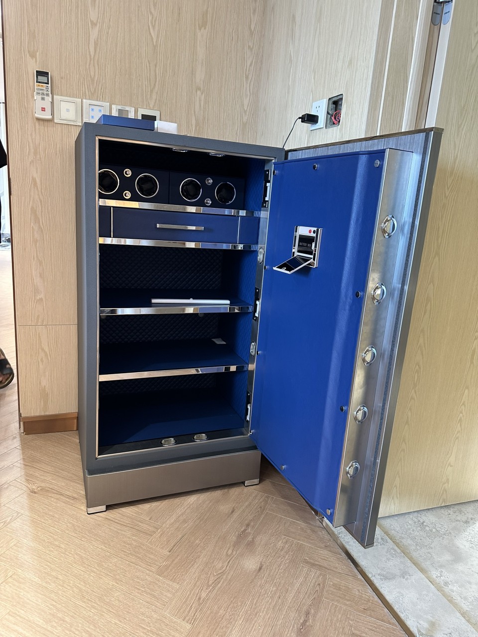 Một trong số các tính năng nổi bật của két sắt Philips SBX702 đó là két trang bị tủ xoay đồng hồ. Với những ai yêu thích, đam mê đồng hồ cơ việc bảo quản là vấn đề rất được quan tâm. Giờ đây bạn sẽ không còn phải lo lắng về việc bảo quản những chiếc đồng hồ cơ của bạn. Bởi két sắt Philips SBX702 đã trang bị sẵn chế độ tự động xoay và đảo chiều xoay trục đỡ đồng hồ. Giúp đồng hồ cơ cao cấp liên tục được nạp năng lượng mà không cần bạn phải đeo lên tay.