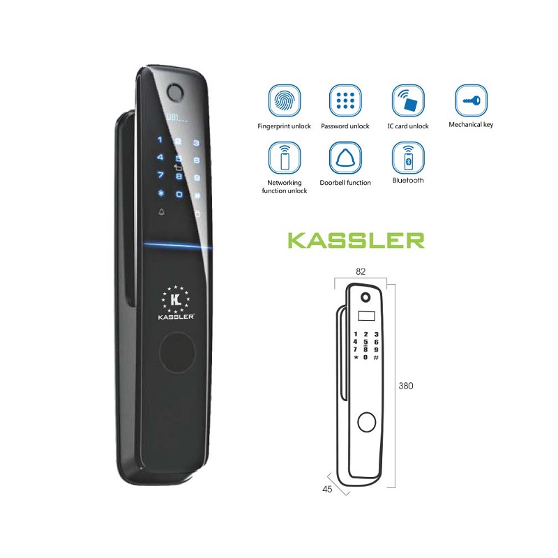 Dòng khóa cửa thông minh Kassler KL-878 không chỉ mở khóa thông minh bằng vân tay, thẻ từ, mật mã, chìa cơ. Sản phẩm Kassler KL-878 mang lại tính năng hiện đại, tiện lợi và đảm bảo độ bảo mật tuyệt đối cho người dùng.