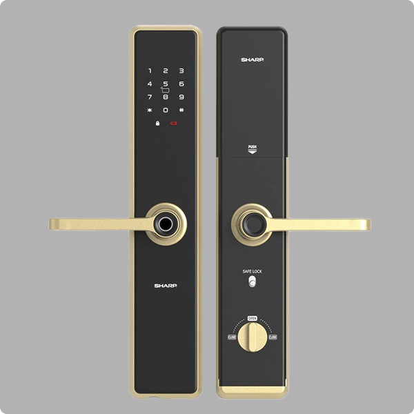 Khóa vân tay Sharp A1-B với 4 phương thức mở khóa: Vân tay, thẻ từ, mật mã, chìa cơ.