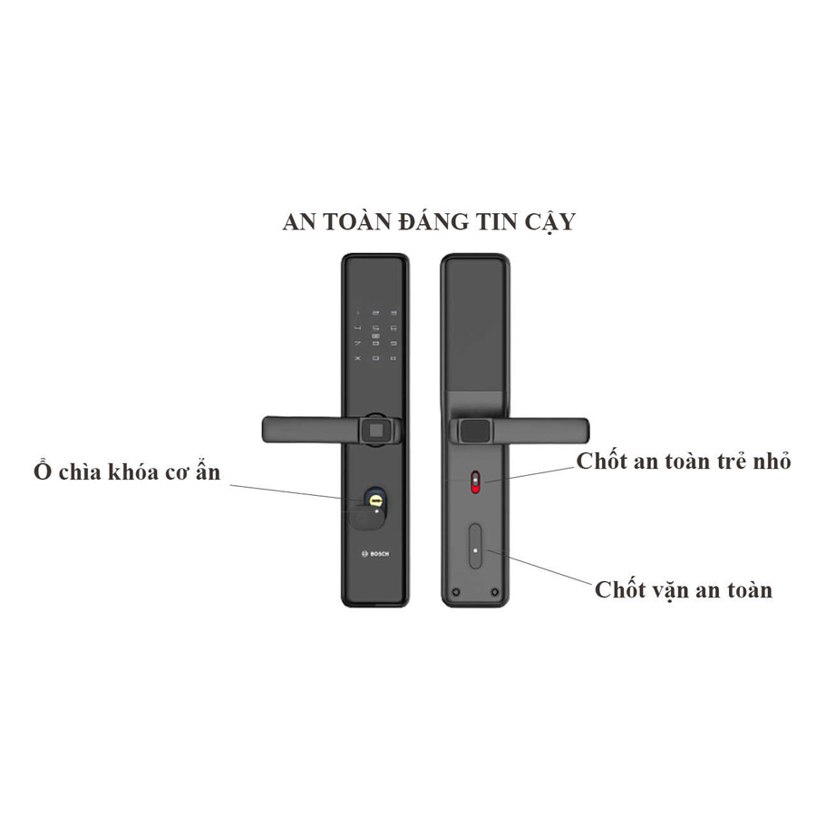 Chế độ bảo mật 2 lớp: Khóa Bosch được trang bị công nghệ bảo mật mở cửa 2 lớp. Người dùng có thể cài đặt chế độ bảo vệ 2 lớp. Khi cài đặt thì người dùng phải đồng thời dùng vân tay + mã số hoặc mã số + thẻ từ hoặc thẻ từ+ vân tay …. Kết hợp đồng thời 2 phương pháp thì mới có thể mở được cửa.