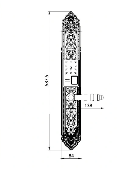 - Kích thước thân khóa ngoài: R84,5 x C695 x D34 mm