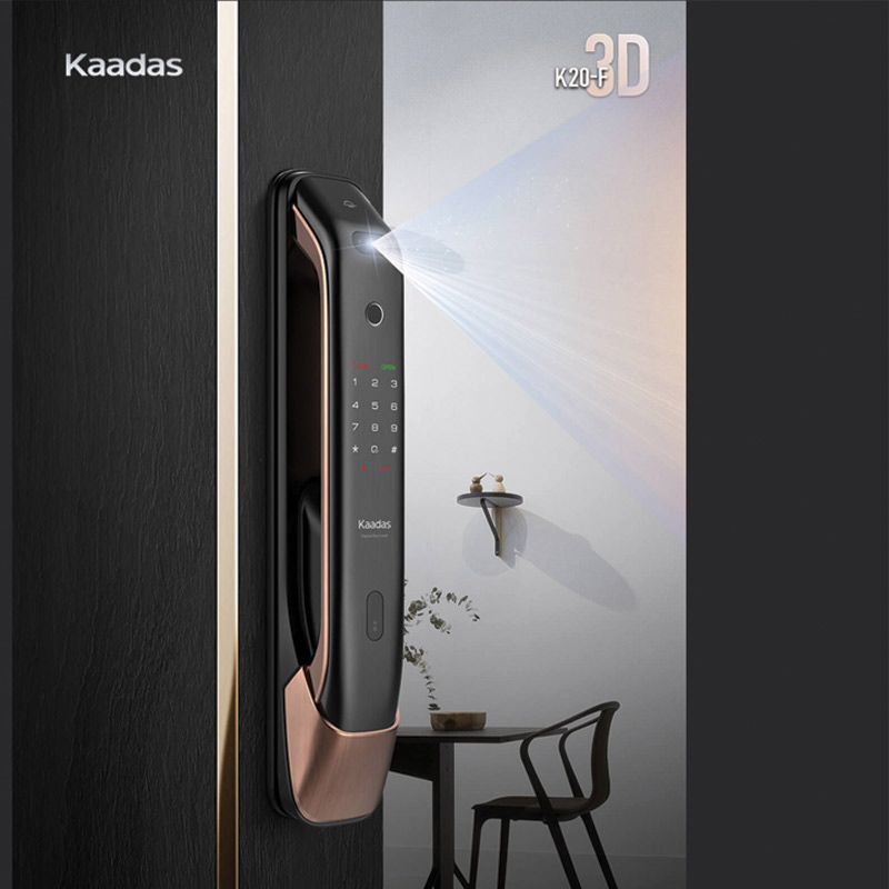 Tính năng mở khóa bằng khuôn mặt: Khóa vân tay Kaadas K20F được trang bị cảm biến nhận diện gương mặt 3D đầu tiên tại Việt Nam. Chức năng mở này có thể tự động nhận diện gương mặt ở khoảng cách 1.5m, với sai số chỉ 0.0001%. Chủ thể chỉ cần đứng trong phạm vi quét, khóa cửa sẽ được mở ngay mà không cần thực hiện thêm bất kỳ thao tác nào.