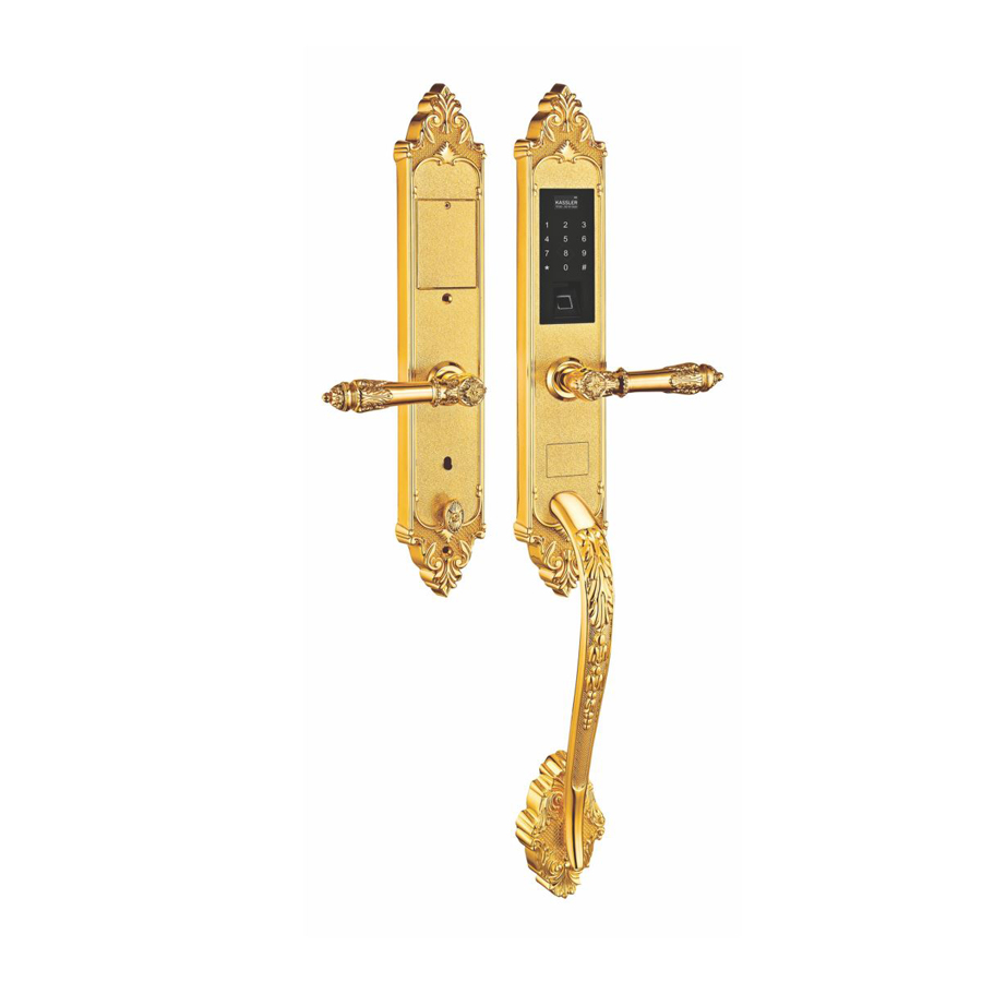 Thường thì các loại khóa vân tay, khóa điện tử trên thị trường sẽ được làm từ chất liệu hợp kim kẽm. Nhưng khóa vân tay Kassler KL – 969G được làm từ đồng 100% và mạ vàng 18K. Vì thế, sản phẩm có màu sắc sang trọng, sáng và bền đẹp không phai màu theo năm tháng.